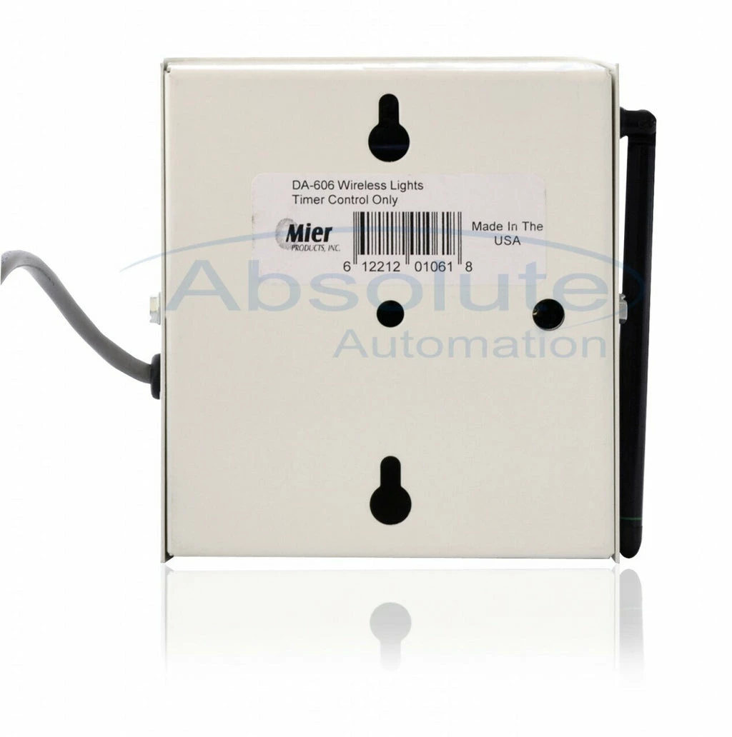 The DA-606LK is a kit which allows Mier driveway alarm users to have lights turn on when their DA-500 Driveway Alarm System is triggered. The kit complete with a timer control to easily adjust the length of time the lights are on for as well as one wall switch and one lamp controller for activating the lights.