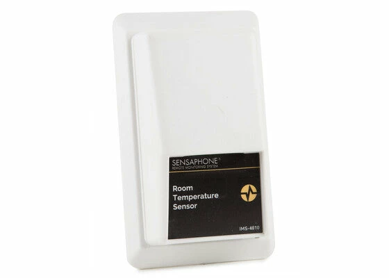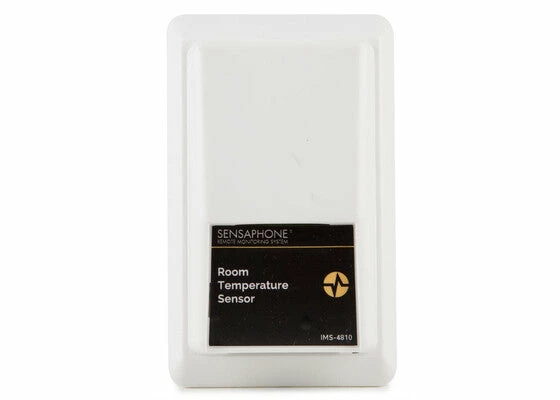The IMS Room Temperature Sensor is used exclusively with the Sensaphone IMS system to measure and provide real time indoor air temperatures from 5° to 122°F. The connection between the sensor and IMS unit is made via RJ-45 patch cable. The sensor may be mounted either on a wall or to a single-gang electrical box.