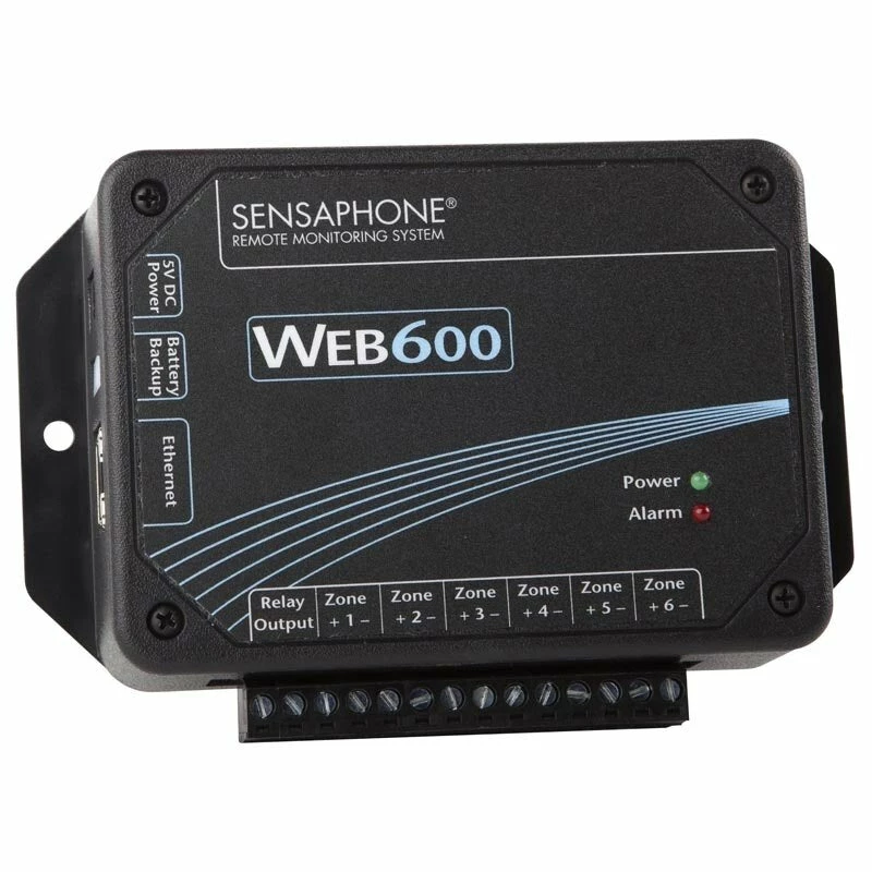 The Sensaphone WEB 600 is a powerful but affordable stand alone web based alarm and monitoring system which can log data and notify users to alarm conditions via email, text message, and SNMP traps.